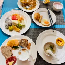 Excellent! We checked in quite late at night, and the kids were so exhausted they didn't wake up until past 9 AM, causing us to miss breakfast. However, a wonderful staff member was incredibly accommodating and arranged for the kitchen to prepare three bowls of noodles for us. They even brought us a selection of cakes later on. We're truly thankful!