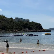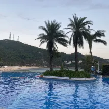 It's a nice hotel. The staff is very friendly and always available on Wechat. The hotel offers everything you need, including a spa, an outdoor pool, and hot springs. There is a buffet breakfast and dinner. The main disadvantages for foreigners is the condition of the beach, which is very dirty with trash everywhere, and the buoys are too close for swimming. I don't know if I want to come back here for the sea, but I probably don't.