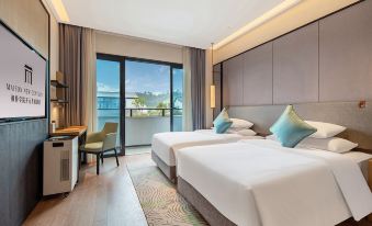 - **房間設計**:入住的雙床房空間寬敞,裝修風格融合了現代簡約與東方禪意,原木色調的傢俱搭配柔和的燈光,營造出寧靜的氛圍。