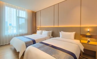 酒店地理位置非常好,離淄博站、萬象滙、八大局的距離全部都小於2km,況且酒店門口就是共享單車停車區所以騎車十分鐘左右就能到附近所有有名的商場景點和站點去,就算去海岱樓萬達吾悦廣場也都非常方便,酒店門口的共享電動車和公交站點可以滿足所有市區內的出行需求。