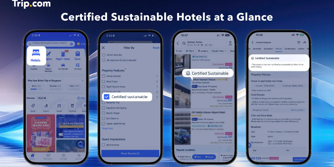 Trip.com, one of the world’s leading online travel service providers, has introduced a new feature that highlights sustainable hotels and accommodations certified by a GSTC-Accredited Certification Body.