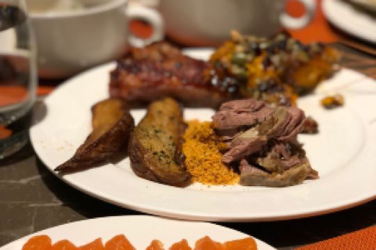 There are a full range of varieties, including roast lamb, salmon, roast beef, sushi, and lamb skewers. I like all of these. The dining environment is elegant and the seats reserved are very satisfactory. It is great to sit by the window. Overall, I am very satisfied.