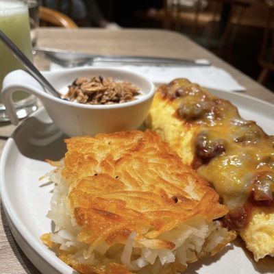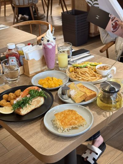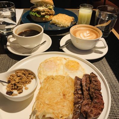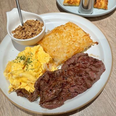 This is a restaurant that opens very early, at 7:00 in the morning. The short ribs are fried to perfection, the hash browns are shredded and fried together, crispy, and delicious. This is a sophisticated brunch restaurant with a higher price per serving, and a 10% service charge is required, but the service is really good.