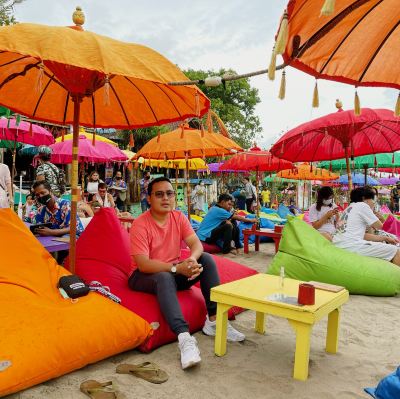 There is the lowest per capita consumption, so we ordered a lot of snacks. There were so many people, and the distance between each umbrella was relatively small, so it seemed a bit crowded. However, it was nice to play on the beach, as the beach here is very big.