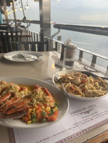 The result of the semi-free travel was that no one cared about us when we checked in at the hotel at almost 2pm. We spent the whole afternoon researching where to eat and found a place called Harbor View Restaurant, which claimed to have a beautiful view of the sunset. Unfortunately, the weather did not go as planned, and it was still sunny and rainy, so we could not see the sunset. What's even funnier is that when we went there, we asked the hotel to help us call a taxi, but a private car like Uber came, and it couldn't find the restaurant, so it dropped us off near Rizal Park, and we navigated to the restaurant ourselves. Four dishes and four glasses of water cost a total of 2011 pesos, which was very acceptable and tasted pretty good. The return trip was not smooth. We walked to the street and stopped several cars. They either said they didn't want to go or they shouted at the price. We walked to the entrance of Luneta Hotel and asked the doorman to help call a taxi using their taxi app. As a result, a taxi came and shouted at the price. In the end, we successfully bargained and paid 250 pesos. Although it was a little more expensive than the 200 pesos we paid, we arrived at the hotel safely, and everything was OK.
