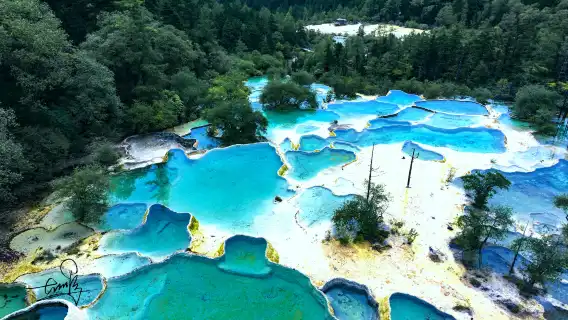 It takes about 2 hours to reach the Huanglong Scenic Area, a World Natural Heritage Site, and you can freely visit the Fairyland on Earth.