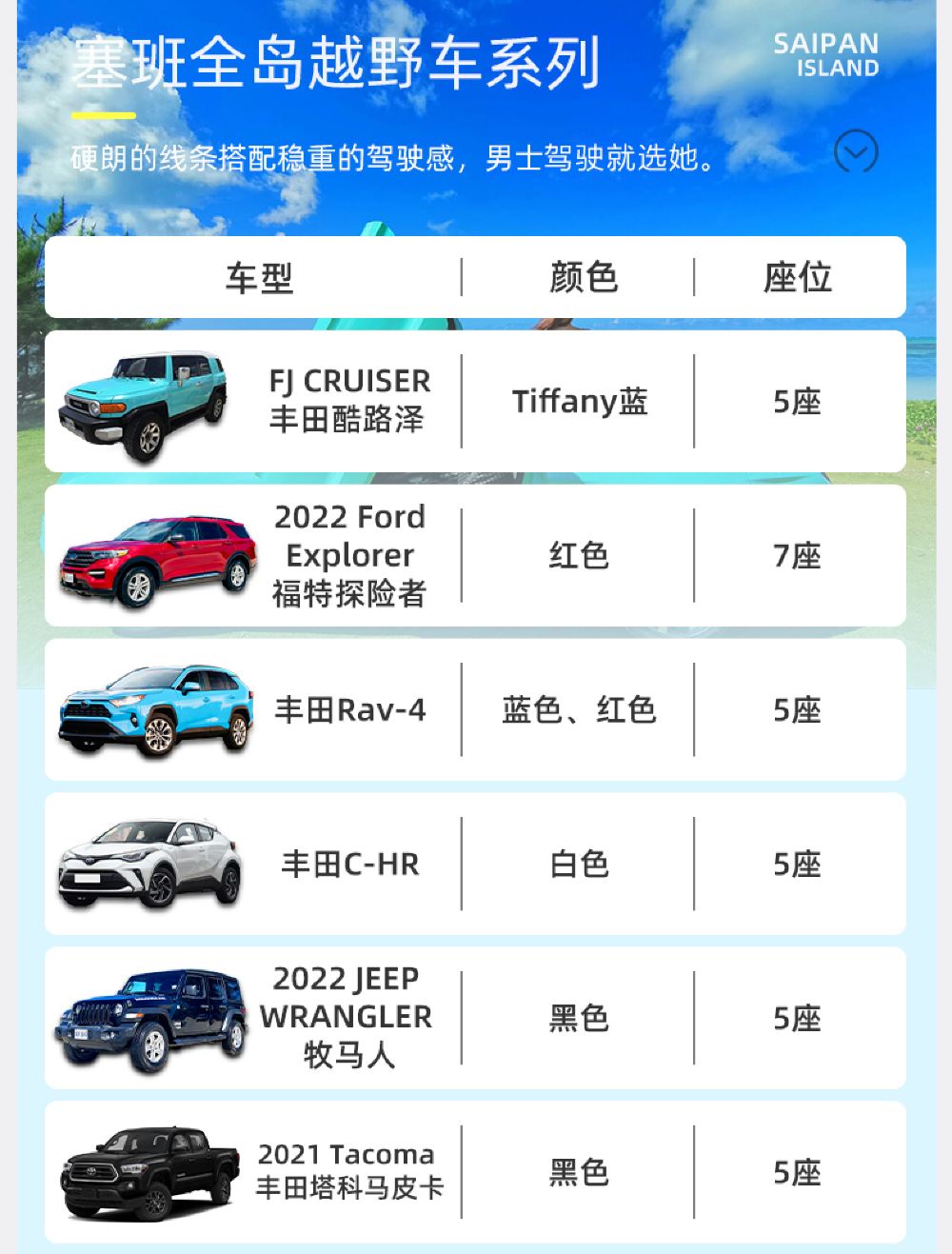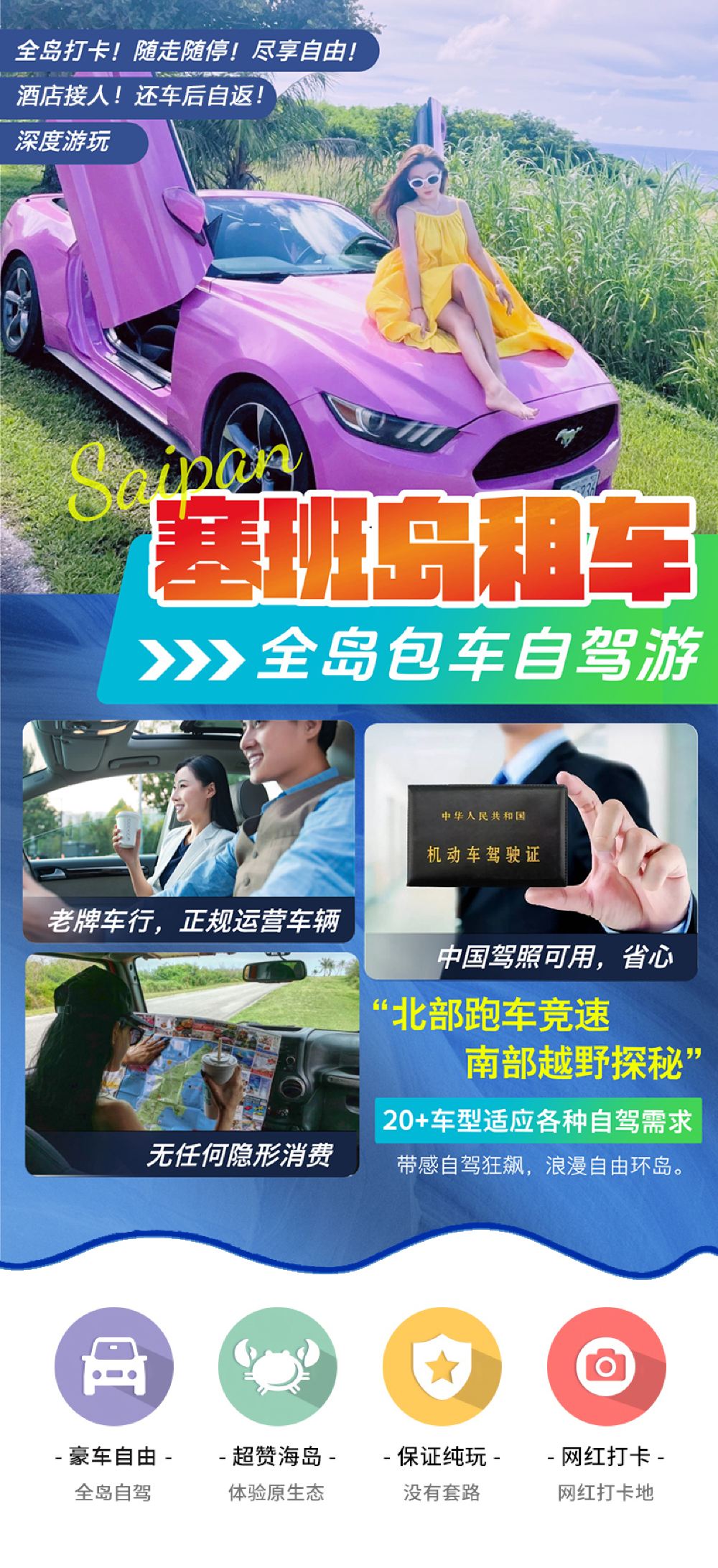 Saipan car rental and self-guided tour [private charter island tour + hotel transfers + multiple vehicle types available + Chinese driver's license accepted + northern supercar racing + southern off-road adventure]