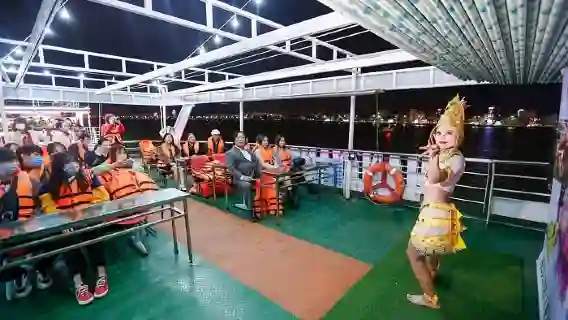 Admire Da Nang's iconic bridges sparkling at night from a relaxing Han River cruise