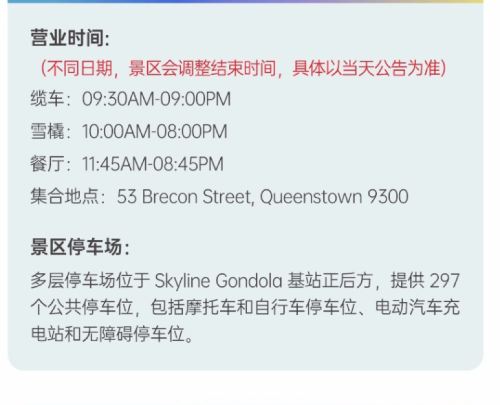 *Note: The opening hours of cable cars and scooters may be adjusted according to seasonal changes. Please refer to the actual opening hours on the day of your visit!