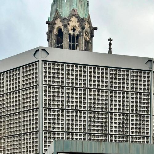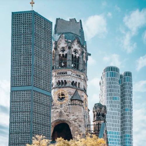 ▲ Kaiser Wilhelm Memorial Church: A landmark in West Berlin, the preserved ruins of the tower stand in stark contrast to the modern glass chapel, symbolizing reflection on war and peace, with a solemn and tranquil interior.