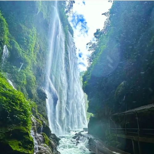 Introduction: The canyon features numerous waterfalls, babbling streams, and lush vegetation, including a spectacular 180-meter-high waterfall. It also boasts unique sights like karst caves and underground rivers, making it an ideal destination for summer retreats and adventure.