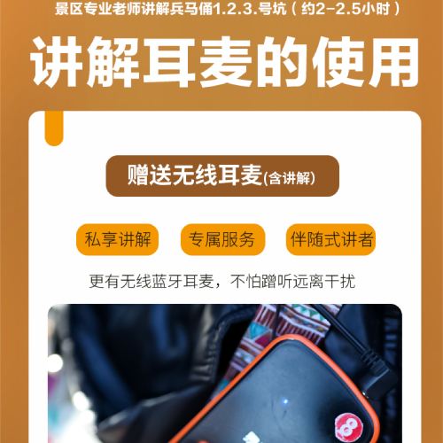 2. Free use of wireless headsets [A deposit of CNY 100 is required, which will be refunded immediately after the buided commentary if there is no loss or damage. A compensation fee of CNY 100 will be charged for any damage].