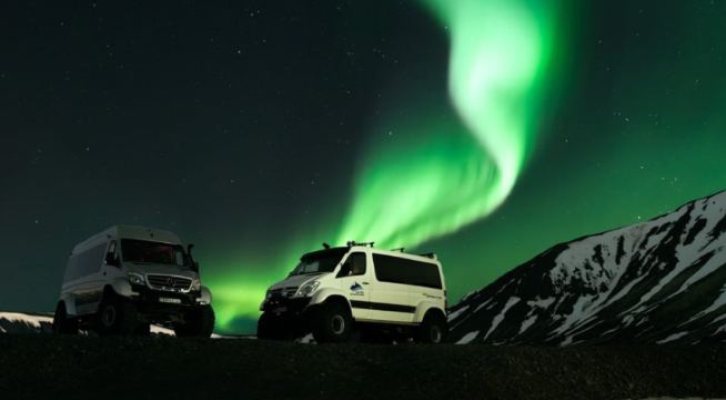Itinerary for reference, subject to change: The Northern Lights, this mesmerizing natural phenomenon, is one of the most breathtaking sights you'll ever witness in your lifetime. In the dark Arctic night sky, the ever-changing colors and shapes will leave you in awe. First, an experienced Northern Lights guide will pick you up at your chosen location in a customized 4x4 super jeep. During your quest for the auroras, you'll traverse some of Iceland's most spectacular natural landscapes under the guidance of a knowledgeable guide after nightfall. The super jeep allows us the flexibility to reach remote areas inaccessible to large tour buses, giving you a better chance to admire the Northern Lights away from crowded spots. Our guide will take photos whenever the auroras appear, ensuring you capture memorable moments with this celestial wonder.