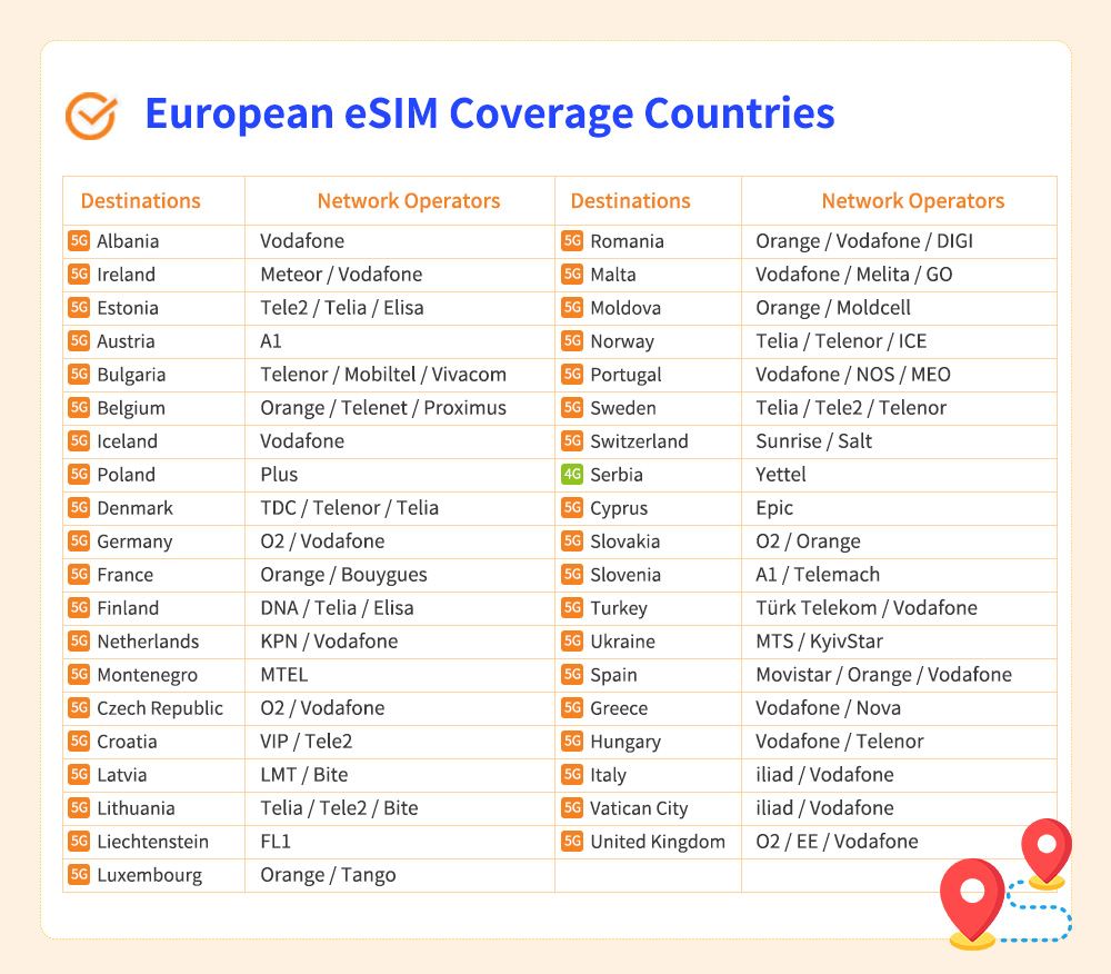 ※ European Covered Destinations: