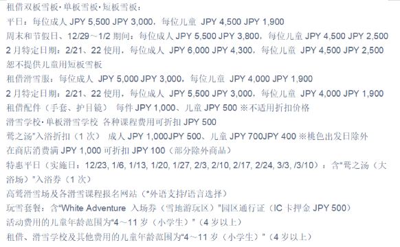 The rental reservation pages on official ski resort websites may differ from those of tour groups. Please pay attention to this information when booking to avoid incorrect orders.