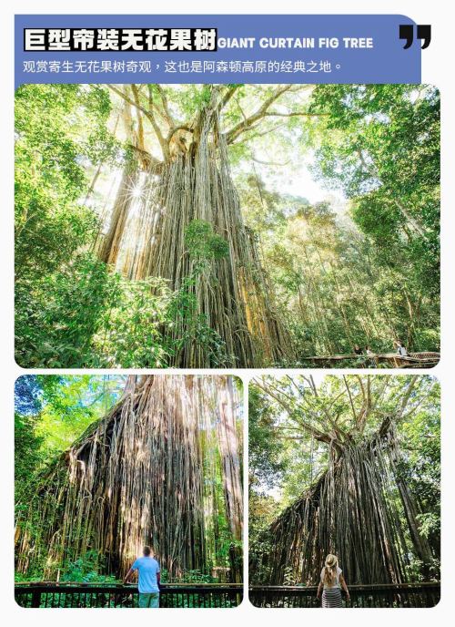 Check in at the Century-Old Sacred Tree ~ Cathedral Fig Tree: Step into the ancient forests of the Atherton Tablelands and look up at this century-old sacred tree, feeling its massive roots as sacred and solemn as a cathedral. In this tranquil primordial rainforest, listen to the whispers of nature and sense the passage of time.