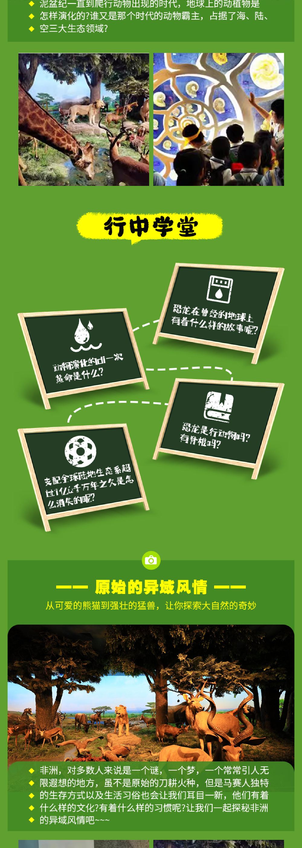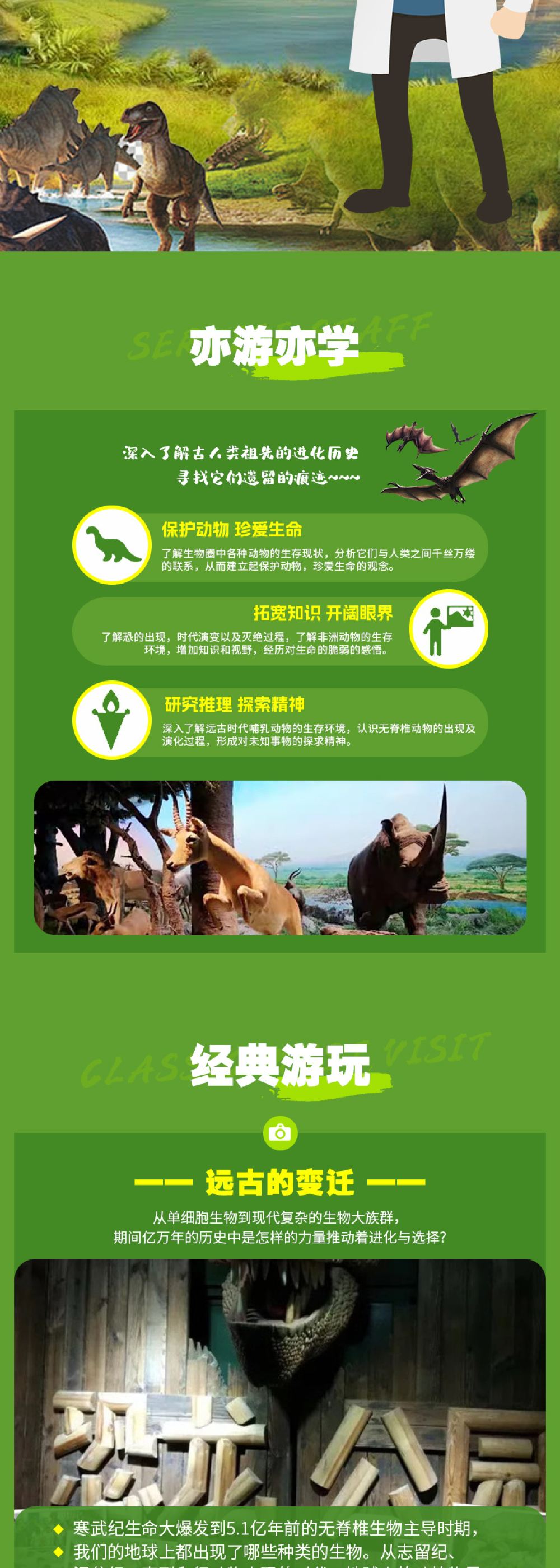[Family Fun Park] Featuring various scene recreations, dinosaur exhibits, the evolution of human history, and fascinating displays of diverse flora and fauna