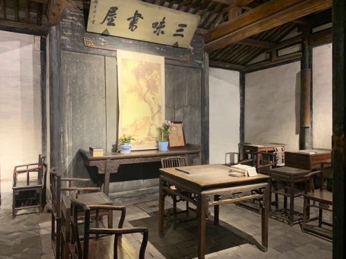 [Sanwei Study Hall]Sanwei Study Hall was a renowned private school in Shaoxing during the late Qing Dynasty, located at No. 11 Duchangfangkou. The tutor, Shou Jingwu (also known as Jinghu in his later years), was an upright, simple, and erudite man. His character and scholarly spirit left an unforgettable impression on Lu Xun. Shou Jingwu taught here for 60 years, and from the building structure to the interior furnishings and even the surrounding environment, it has largely retained its original appearance. The Sanwei Study Hall is a small three-bay flower hall that originally served as the Shou family's study. It faces west with its back to the east, borders a small river to the north, and stands opposite the Lu Xun Ancestral Residence across the river.