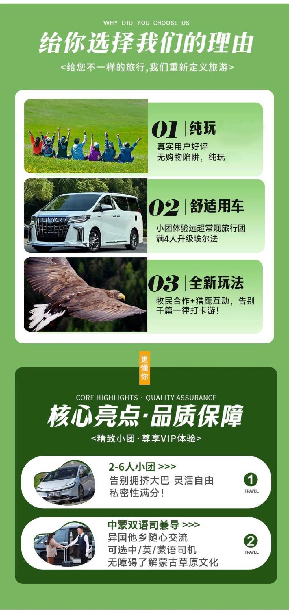 Small Group Tour for 2-6 Travelers: Bilingual Service in Chinese and English + Costume Experience + Eagle Photo Session + Nomad Family Visit + Meditation Temple