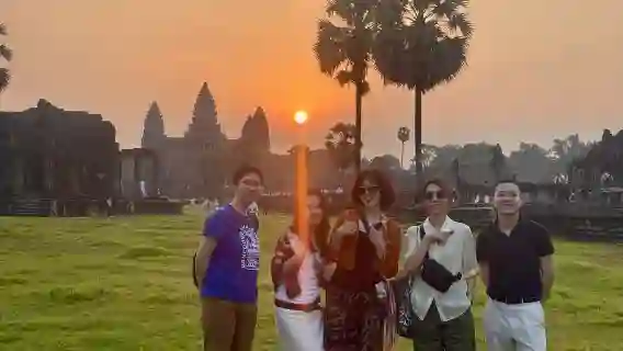 Sunrise at Angkor Wat: Witness the stunning sunrise over the world's largest religious monument, setting the tone for an unforgettable day!