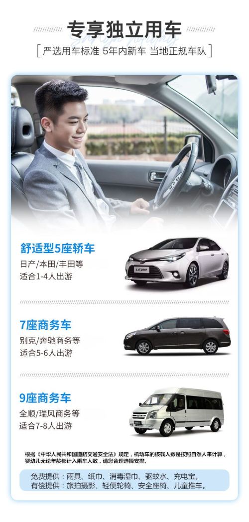 Full private charter service, flexible departure time, customizable itinerary, and complimentary station transfers!