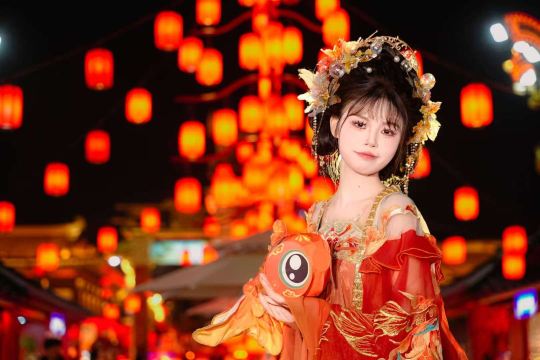 The shooting location is at Xi'an's Grand Tang Mall, which is themed around the prosperous Tang Dynasty culture with Tang-style elements as its main feature. As night falls, the dazzling lights, Tang-style architecture, and lively street atmosphere blend together, creating a vivid scene reminiscent of the Tang Dynasty. Strolling through the area, you'll often encounter people dressed in ancient attire, adding to the immersive atmosphere. In front of the Giant Wild Goose Pagoda, the weight of history meets modern lighting; at Zhengguan Square, the grand architecture adds a majestic touch to the scene. Other photogenic spots include the bustling Zhuque Gate and the quaint Hu Shop, where every photo seems to tell a story spanning a thousand years.
