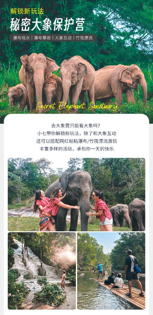 Chiang Mai Secret Elephant Sanctuary + Namtok Bua Tong-Nam Phu Chet Si National Park 1-day Tour with Optional Bamboo Rafting & Hotel Transfer