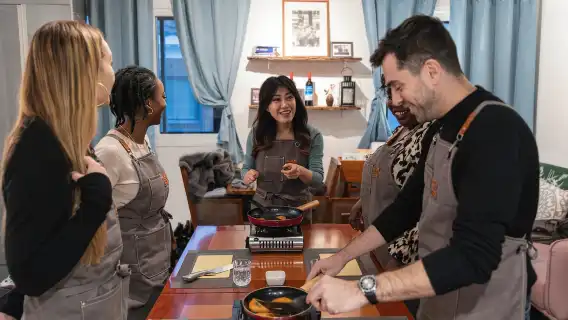 Share your homemade dishes with the group and enjoy wine pairings during the meal.