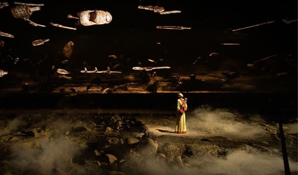 - The moment when historical relics like the Terracotta Warriors emerged from underground, these artifacts rose up shining brilliantly, accompanied by the melodious sound of ancient guqin music, creating a truly awe-inspiring scene.