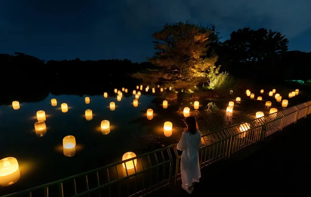 △ Each of the lamps on the Oike Lake’s surface floats autonomously.