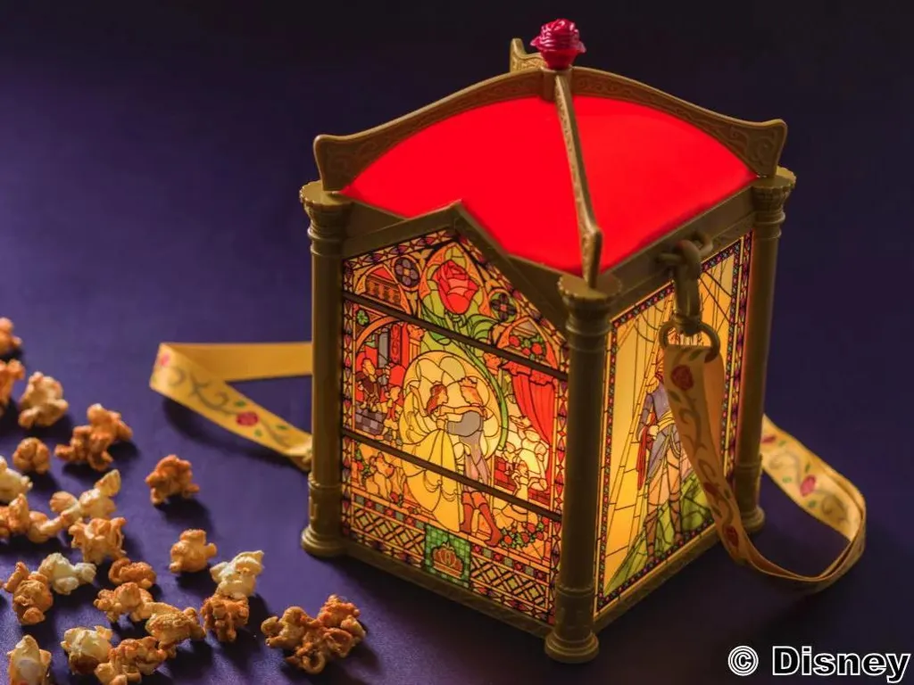 ②Light up the popcorn bucket inspired by the Walt Disney Animation Studios' Beauty and the Beast, and enjoy the romantic shimmer of the stained glass design.